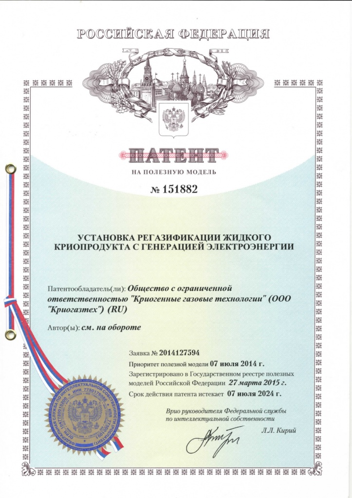 Патент на установку регазификации жидкого криопродукта с генерацией электроэнергии